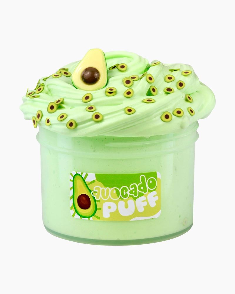 Soft, dreamy spreadable butter slime with a beautiful soft green color. Light + airy texture that inflates a ton and scented just like an avocado spa. (floral, relaxing, hint of sweetness) Topped with an avocado charm and themed fimo slices!