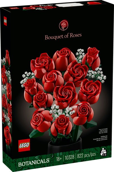 A joy to build, this LEGO bouquet depicts a dozen red roses, including 4 in full bloom, 4 blooming and 4 in bud, with long green stems for vase display, plus 4 sprigs of baby’s breath with small white flowers. Easy to assemble, the bouquet makes an elegant display for any space and is combinable with other sets from the LEGO Botanical Collection.