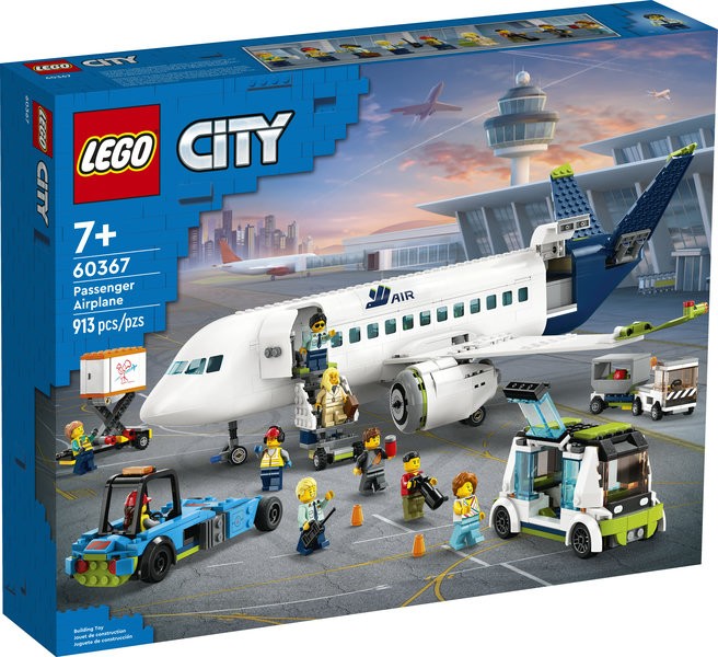 Here’s a treat for fans of model planes. This 7+ LEGO® City Passenger Airplane (60367) set is packed with realistic features and functions. The super-sleek toy aircraft has a detailed interior with a cockpit, seating, an aisle and a toilet and comes with an airstair, apron bus, pushback tug, catering truck and baggage truck, plus 9 play-inspiring minifigures.