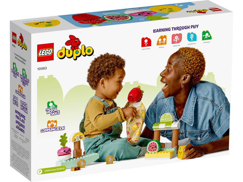 - Farmers market toy for toddlers – Introduce little builders aged 18 months and up to fun shopping play with the LEGO® DUPLO® My First Organic Market (10983) toy