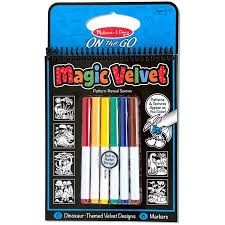 Magic Velvet colouring scenes are filled with special effects! The velvet-flocked backgrounds create amazing contrast with the six vibrant marker colours. And hidden patterns appear when you colour in the scenes! This compact, spiral-bound colouring activity book is just the right size for kids and perfect for travel . . . the felt-tip markers store right in the cover. Six sturdy colouring boards feature dinosaur-themed scenes.