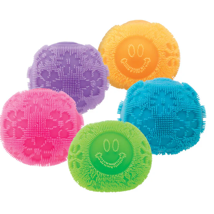 Get groovy with the NeeDoh Fuzz Ball Flower Power! This squishy sensory toy brings together a velvet texture and funky flower power pattern that you can see and feel. Experience the soft cloud squish with every squeeze – a totally far-out tactile adventure!